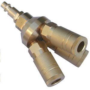 This coupling manifold is designed to simplify multiple tool operations. Includes all the parts needed to split one hose to 3 outlets. All components (Except for springs and balls) are made of SOLID BRASS. Manifold is made of ALUMINUM