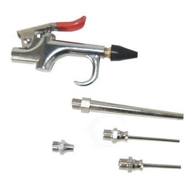 This 5 piece air blow gun kit attaches to a standard air hose fitting. It includes 1 air blow gun, 1 tapered rubber tip and 3 needle nozzles. This is the ideal kit for blowing out hard to reach areas in and around cars, equipment, electric motors or any other confined area. This gun has been fitted with a vinyl coated trigger for a comfortable and easy grip.