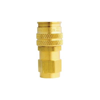 MIS-745 Features: -AMT-style are push type with drag guard.-Heavy duty brass-rust resistant.-Accepts the 3 most popular 1/4" basic style plugs sold. Specifications: -1/4'''' NPT Female AMT-Style 3 Way Coupler. Warranty: -1 yr warranty on material and workmanship.